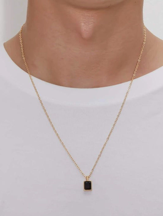 Cadena Elegante con Rupia Geométrica Negra