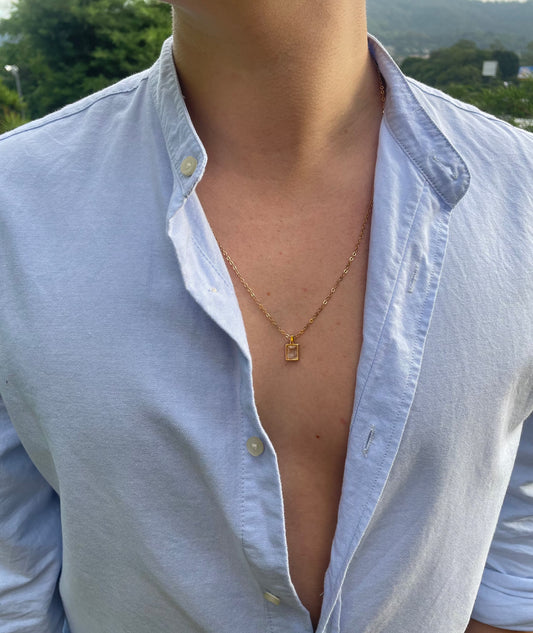 Cadena con Colgante Cuadrado Geométrico Calado Y Detalle De Borla