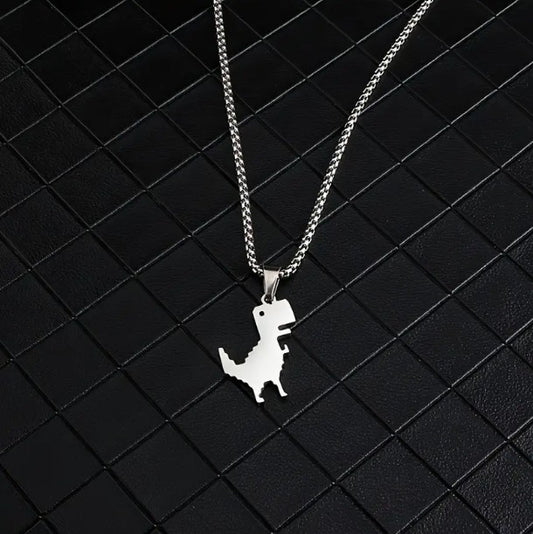 O shape chain con pendiente de dinosaurio plateado