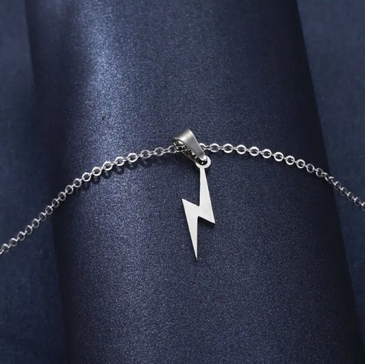 O shape chain con pendiente de rayo plateado basico